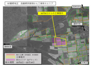 道営事業麓郷地区 西麓郷幹線 工事に伴う断水エリア